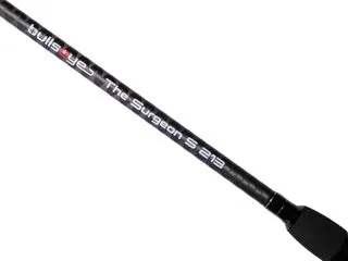 Surgeon Spin 213 2–14g (this model): 7+1 guides, 2-piece design, 113 cm transport length—ideal for drop-shot, Texas rigs, finesse jigs, and small hardbaits targeting perch, trout, pike-perch, and pike from shore, boat, kayak, or belly boat