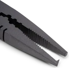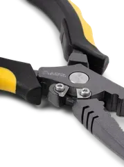 A sharp side cutter built into the pliers handles both braided and monofilament lines, letting you trim tag ends and adjust leader lengths on the spot. The crimping indent design allows you to secure crimps neatly, making these pliers a true multitool for rig-building sessions on the bank or at home. Ergonomic soft-touch handles reduce hand fatigue during longer rigging jobs, and the black-and-yellow colour scheme makes the tool easy to spot in your tackle bag.