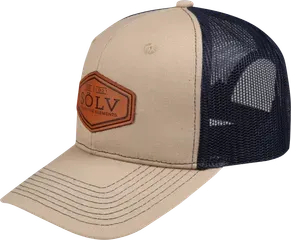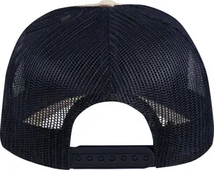 The Abu Garcia Sölv Trucker Cap is available in one size and comes in a navy blue front with beige mesh back.