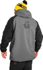 With a 10,000 mm waterproof rating and 3,000 g/m²/24h breathability, this jacket keeps rain out while allowing moisture to escape during active bankside work. The heavy fleece lining provides excellent thermal insulation without bulk, and multiple storm baffles at the front zip and pockets prevent water from sneaking in through closures.