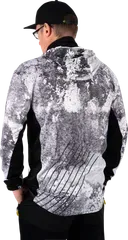 Constructed from a technical 90% polyester, 10% spandex blend, this jersey shields you from harmful UV rays while remaining incredibly light and breathable. Heat dissipates quickly through the fabric, and strategic mesh panels under the arms and down the sides provide extra ventilation where you need it most. The built-in hood protects your head, while the integrated lightweight snood covers your face and neck—no need for separate accessories.