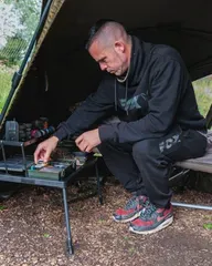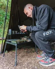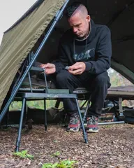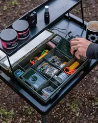 The Fox 2 Tier Bivvy Table delivers organised storage in a compact 1.8 kg package. Two tiers, adjustable 32–50 cm height, and ultra-slim 2.6 cm pack-down make it perfect for mobile carp anglers.