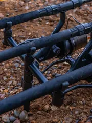 The Fox Black Label QR Buzz Bar 3-Rod offers quick-release alarm mounting with a twist-lock collar, 23–26 cm spacing, and rugged 16 mm anodized aluminium construction for fast, tool-free setups.