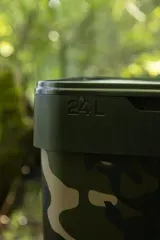 The Fox Camo Bucket 12L is a heavy-duty mid-sized bucket with ergonomic handle and quiet lid, designed to fit Fox barrows and Spomb stands perfectly. Ideal for day sessions and all-round bait storage with discreet camo finish.
