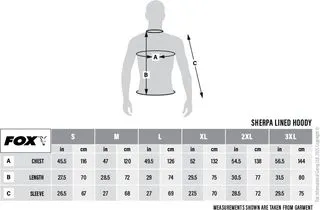 The Fox Camo Full Zip Prem Sherpa 310 Hoodie is available in multiple sizes to ensure a comfortable fit:
