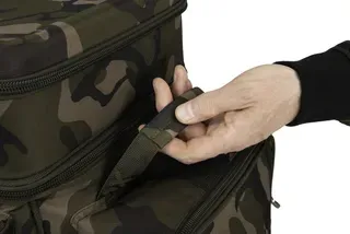 The Fox Camolite 2 Person Session Cooler Food Bag is a large, thermally insulated session bag with a full camp kitchen set for two built in — built from water-resistant 500D polyester for long sessions at the bank.