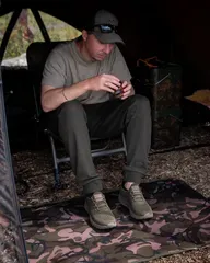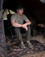 Styled in Fox's distinctive Camo print, the mat blends naturally with the bankside surroundings rather than standing out. At 70x50cm it covers a standard bivvy doorway well without bunching or overhang.