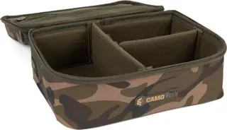 The Fox Camolite Gadget Safe Deluxe (23.5×31×13 cm) organises and protects your bankside electronics, fitting 2× Fox 48K or 1× 96K Halo Power Packs alongside tablets, phones, and torches, with USB access ports for on-the-go charging.