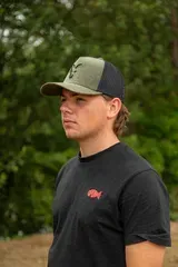 This cap is available in the Fox Collection Trucker Cap Green/Black colorway, offering a subtle, nature-inspired look that blends seamlessly with bankside surroundings.