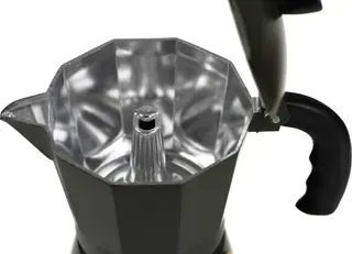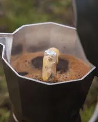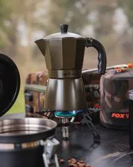 The Fox Cookware Espresso Maker in 450 ml aluminium makes up to 9 cups of fresh coffee on the bank, featuring a lightweight matt khaki build, easy operation, and a built-in safety valve.