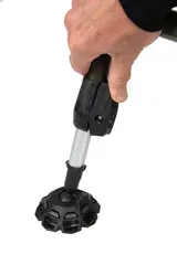 Leg adjustment: One-touch spring-loaded mechanism with locking positions