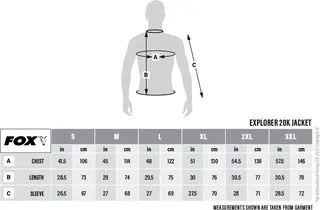The Explorer 20K Jacket is available in multiple sizes to fit a wide range of anglers. Each size features the same 20,000mm waterproof rating and 10,000g/m²/24h breathability: