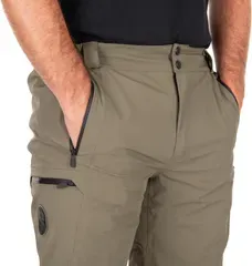With 10,000 g/m²/24h breathability (MVTR), these trousers regulate internal temperature and reduce moisture buildup during active fishing. Strategically placed boot access zippers offer quick ventilation and easy on/off over waders or boots. The partially elastic waistband with belt loops, studs, and hook closure balances security with flexibility, while the 90% nylon, 10% elastane fabric blend ensures unrestricted movement whether you're casting, netting, or hiking to your swim.
