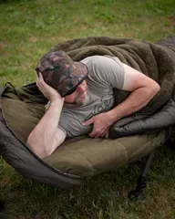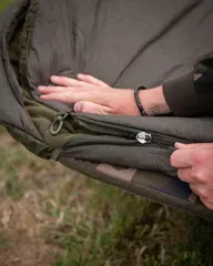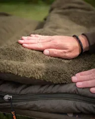 The Fox Voyager XL 220 cm sleeping bag offers extra width (107 cm) and 4-season warmth with dual-fleece lining, 7 Core Hollow Fibre fill, and crash zips for fast exits—ideal for taller carp anglers on wide bedchairs.