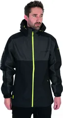 Matrix Tri-Layer Jacket 30K — XXXXL (4XL): 25,000 mm waterproof; 3,000 g/m²/24h breathable; outer 100% Nylon; lining 100% Polyester; color Dark Grey/Black/Lime.