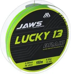Mikado Jaws Lucky 13 is a 13-strand, FiberCore braided line in fluo green. This 0.20 mm, 17 kg, 150 m spool offers high abrasion resistance, smooth casting, and clear line visibility for confident predator fishing.