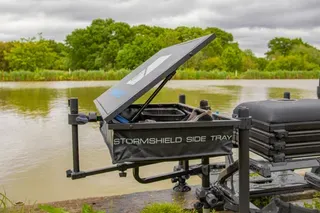 Offbox Side Tray Support Accessory Arm – universal fit for anglers who want to mount accessories outside their side tray without adding extra legs; ideal for platform fishing, commercial fisheries, and tight swims where space is limited