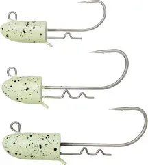 A heavy-duty 8/0 custom hook withstands hard-fighting species, while robust body holders keep soft baits firmly in place cast after cast. An integrated assist-hook ring on the underside lets you add a stinger for short-striking fish.