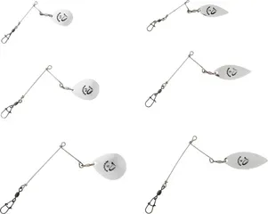 The Savage Gear EasyOn Spinner Bait Kit gives you two clip-on spinnerbait arms that instantly convert your favorite soft plastics and jigs into flash-generating spinnerbaits. Built on stainless steel frames with ball bearing swivels, these arms deliver immediate blade rotation and strike-triggering vibration.