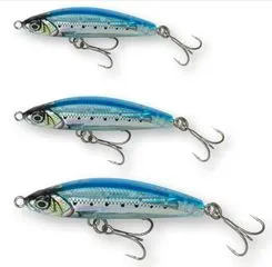 6 cm / 12 g — steps up for larger sea bass, small cod, and needlefish; 0.4–10 m; hook size #12