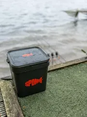 The Spomb Camo Bucket 18l is a robust, ergonomic freshwater fishing bucket with a quiet-opening lid and 18 l capacity, designed to fit Spomb Bucket Stands for organised bankside use.