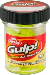The Gulp!® Honey Worm in Chartreuse combines a naturally curved profile with extreme scent dispersion to help you catch more trout and panfish in freshwater.