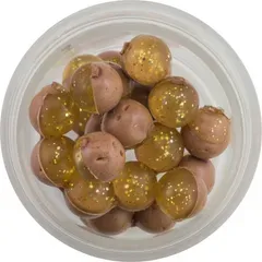 The dual-color design features one translucent side that catches and reflects light underwater, mimicking the natural shimmer of real eggs. Paired with the gold-natural side, this combination offers visibility in varying light conditions while maintaining a lifelike appearance that wary trout will strike.