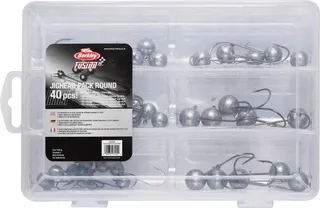The Fusion19 Jighead Round Pack delivers 40 premium round jigheads in the most popular weights and hook sizes, all organized in a convenient tacklebox. Built on sharp, reliable Fusion19 hooks, this assortment keeps you prepared for changing conditions without cluttering your tackle bag.