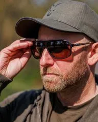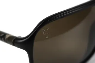 AV8 Brown Lens (Black Frame, Camo Arms) — versatile for bright to moderate light; enhances contrast in variable conditions; ideal for general carp fishing and specimen hunting