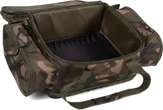 With a low-profile design, this carryall slips under your bedchair to maximise bivvy space. The main compartment accommodates smaller Camolite Accessory Bags and a range of tackle items, while the top pocket is sized for a large Fox tackle box. Two external side pockets with zipped mesh storage provide quick access to accessories like PVA, leaders, and terminal tackle.