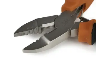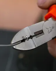This is the Fox Edges Crimp Pliers with cutting edges and gripping jaws, designed specifically for use with Fox Edges Crimps to create flared crimp connections in rig construction.