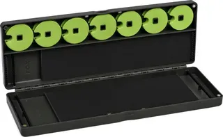 The 7 EVA discs sit firmly on molded posts for safe Chod, Spinner, and Zig rig storage. A molded ruler on the outside lets you tie accurate rigs on the bank, and magnetic closure ensures the box stays firmly shut in transit. Supplied with 50 pins, this box measures 35.5 cm × 13 cm × 3.5 cm and is built from durable EVA foam that protects your rigs in any conditions.