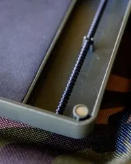 This system holds up to 111 pre-tied rigs, 58 boom sections, and 21 Zig or Chod rigs. One side features a large double-ended rig board with profiled hook bars to protect hook points, while the other combines an extra-long rig board with seven disc storage posts. High-density EVA foam keeps rig pins secure, and boom section retention pegs on both sides ensure your hooklinks stay tangle-free.