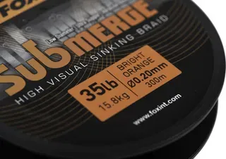 Fox Submerge Orange Sinking Braid is available in four breaking strains and two spool lengths to match your fishing style and venue demands:
